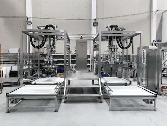 無菌灌裝機主要由無菌灌裝系統(tǒng)、流量(重量)計量系統(tǒng)、滾輪或者工程塑料鏈板輸送系統(tǒng)、計算機PLC控制系統(tǒng)、操作平臺等組成。包裝袋采用鋁塑復合無菌袋(5L-220L)。使用蒸汽噴射方法對袋口和灌裝室進行殺菌,確保灌裝室始終是處于無菌狀態(tài)的,無菌袋口殺菌、開啟、灌裝和封口都在無菌環(huán)境下完成。采用流量計或稱重式計量方式,灌裝誤差≤0.5%。