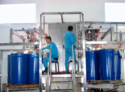 系統(tǒng)組成: 原果的提升系統(tǒng)、清洗系統(tǒng)、分揀系統(tǒng)、破碎系統(tǒng)、預(yù)熱滅酶系統(tǒng)、打漿系統(tǒng)、真空濃縮系統(tǒng)、調(diào)配系統(tǒng)、殺菌系統(tǒng)、無(wú)菌大袋灌裝系統(tǒng)、小包裝分裝系統(tǒng)。