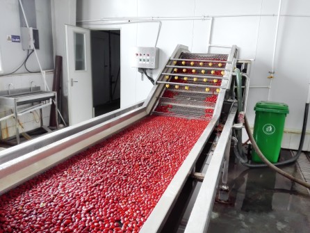 本套生產(chǎn)線適用于棗(椰棗、紅棗)、山楂等核果類水果的加工,可生產(chǎn)干果、干鮮果、濃縮果汁及調(diào)配果汁飲料等產(chǎn)品。 該生產(chǎn)線主要由鼓泡清洗機(jī)、提升機(jī)、檢果機(jī)、分級機(jī)、瀝水風(fēng)干機(jī)、烘干機(jī)、去核機(jī)、破碎機(jī)、萃取罐、分離機(jī)、殺菌機(jī)及灌裝機(jī)等設(shè)備組成。本生產(chǎn)線設(shè)計(jì)理念先進(jìn)、自動化程度高;主體設(shè)備全部采用優(yōu)質(zhì)不銹鋼材質(zhì)制造,完全符合食品加工的衛(wèi)生要求。